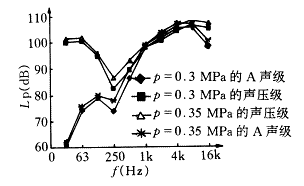 雖然該排氣噪聲中的低頻部分很大,但圖1表明,該低頻部分的A聲級(jí)都在80dB以下,高頻部分的A聲級(jí)很高,而目前國(guó)際上廣泛采用A聲級(jí)衡量一個(gè)噪聲對(duì)人耳的損傷程度,所以,空氣分配閥產(chǎn)生的排氣噪聲仍以高頻部分為主。對(duì)其控制時(shí),以高頻為控制對(duì)象。