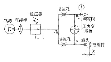 的測量噴嘴噴出,噴嘴與相對的被測孔內表面有一定間隙S,氣體從此間隙進入大氣,被測間隙不同,則測得的壓力不同。