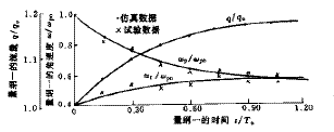 采用四階龍格庫達方法數(shù)值求解此動態(tài)過程可得圖3,圖中點為試驗結果??梢钥闯龇抡娼Y果與試驗結果吻合較好。
