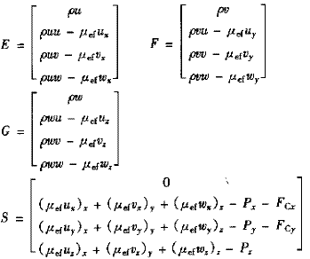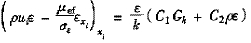 在求解ρ時,假設坐標軸ζ在壁面附近與流線重合,當然這一點也正與本文所用的網格相適應。由此可得k-ε方程的源項分別如下