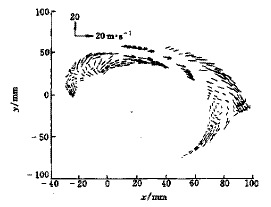 從圖4中表示的葉片間相對速度矢量中可以看到葉輪的進口附近有回流;相對速度隨流道逐漸減小;該圖還表現(xiàn)出葉輪出口附近存在一與葉輪旋轉方向相反的二次流動特征,這與該種離心泵的小流量,高揚程的外特性有關,表明該種泵的效率比沒有二次流的泵的效率有所下降,反映了以效率降低換軸功率減少的設計思想。#p#分頁標題#e#