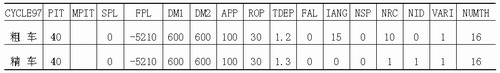 程序格式如下:CYCLE97(PIT,MPIT,SPL,F(xiàn)PL,DM1,DM2,APP,ROP,TDEP,F(xiàn)AL,IANG,NSP,NRC,NID,VARI,NUMTH)。