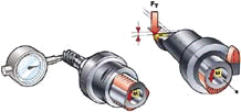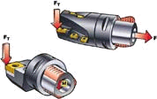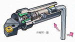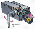 - 與前述相同,通過扇形塊夾緊刀具,但采用的是凸輪軸機構。用六角扳手將螺釘擰大約半圈 即可簡便地完成裝卸。