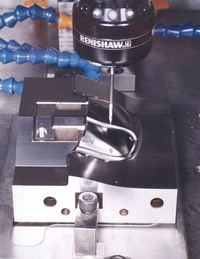 可用于自動地確定零件的位置,然后建立起一個工作坐標系統,機上檢測可削減設置時間,提高主軸的利用率,降低卡具的成本和消除非生產加工通行時間。在復雜的零件加工方面,原先需要45min時間調試卡具,現應用檢測裝置只需45s并且全部由CNC自動操作完成。在開始加工鑄件或鍛件時,檢測裝置能確定工件的形狀,可避免因空切而浪費時間,并可幫助確定最佳的刀具切入角度。工藝過程中的控制是利用檢測裝置對切削過程中的機床特性、尺寸和位置進行監控,同時驗證每一加工工序各種特點之間的精確尺寸關系,以避免發生問題。可以對測頭編程,并按程序檢測各階段的實際加工結果,然后自動實現刀具補償,特別是在粗加工或半精加工以后。