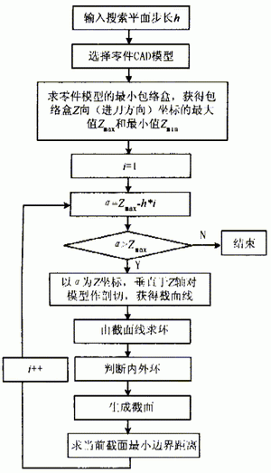 a. 以一定的步長做一組垂直于進刀方向的搜索平面與型腔實體相交,形成若干搜索層。