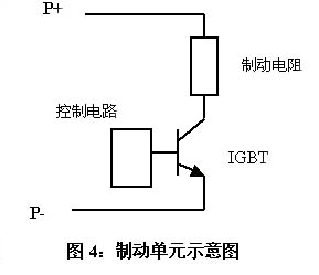 如果不把這部份能量消耗掉,過高的泵升電壓將使用變頻器出現(xiàn)保護,甚至?xí)p壞變頻器,為盡快把電機反饋的能量消耗掉必須加裝裝制動組件,深圳康沃電氣公司專業(yè)生產(chǎn)的CVF-BU系列制動單元適用于各種通用變頻器,其示意圖如圖3,當(dāng)制動單元控制回路檢測到直流母線電壓達到一值時控制其開關(guān)管IGBT開通,制動電阻RB接到回路中將電機的反饋的能量消耗在電阻上。 #p#分頁標(biāo)題#e#