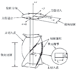 - 在實施刀具偏擺數控補償加工之前,首先要知道零件的加工變形量,即利用有限元技術對工件進行加工變形分析;而精確的變形分析又依賴于準確的載荷模型(切削力、裝夾力、定位約束等),其中關鍵是切削力的計算。不同的刀具及加工方法,有不同的切削力計算方法。在航空薄壁零件的加工中,以螺旋立銑刀加工居多。而對于螺旋立銑刀的受力模型,以沿著刀具螺旋線作空間狀態分布的銑削力模型為最佳(如圖1)。