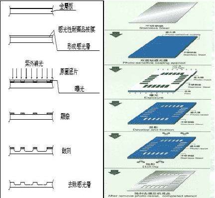 蝕刻就是利用合適的化學溶液腐蝕去除材質上未被光阻覆蓋(感光膜)的部分,達到一定的雕刻深度。