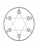 法蘭盤轉動方向加工路徑(如圖所示): 當采用逐步加工法路徑從A→B→C→D→E→F。