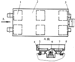1.滑塊 2.滑鞍 3.油缸 4.壓板 5.壓塊 6.油缸支座 7.導軌 8.床身