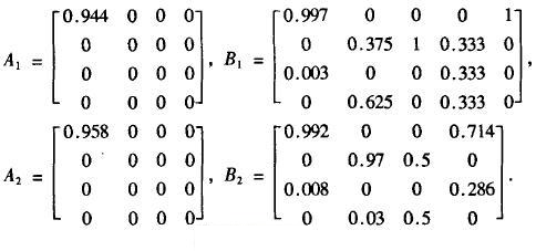 基于方程式(1)一(4),將表2和表3中的數據分別代人(2)和(4)可求得這兩個工藝的技術系數矩陣,如下所示