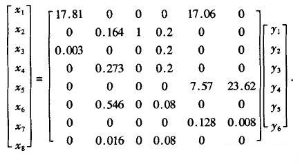 應用方程式(6)~(11)及A1,B1,A2,B2,就可以計算出集成技術系數矩陣和這兩道工藝輸入輸出關系的數學方程,結果如下