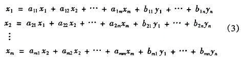 A和B是工藝過程中的技術矩陣,矩陣A描述在工藝輸出中物質形態沒有變化的系數矩陣,矩陣B表示工藝輸出中產生了新物質的系數矩陣.A是一個方陣,在工藝過程輸入量數目和形式不變的情況下,(I-A)是非奇異的,則輸入量X可根據輸出l,表示為: