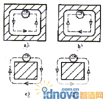 加工零件外表面:正好相反,順銑時,刀具順時針運動(見圖1c),逆銑時,則刀具逆時針運動(見圖1d)