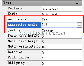 創建一個單行文本,內容隨便,這里是“ScaleText”,字高取5,然后打開該文本的屬性查看器(如圖2),找到"Annotative"項,將其設為"Yes",這樣就會有一個"Annotative Scale"項出現,里面顯示當前的注釋比例是"1:1"。默認情況下,當前的注釋只有一個比例,要增加其它的比例,要點擊"Annotative Scale"項后面的"...",打開可用注釋比例列表對話框(如圖3),對象只能按此對話框中顯示的比例進行縮放,用戶可以根據自己需要增加或定義新的比例,這里我們增加另一個比例"1:2"。這時如果在圖1中將當前模型空間比例設為"1:2",則該文本將為自動放大2倍,在當前模型空間里其字高將變為10,但其在圖紙空間里的字高將不會變化。