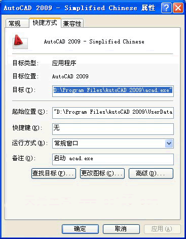 第一種方法:首先,你得找到你電腦上AUTOCAD的安裝目錄,比如說,我電腦上安裝了AutoCAD 2009 - Simplified Chinese這個版本,那你就右鍵桌面上“AutoCAD 2009 - Simplified Chinese”快捷方式,找到最下面的屬性,彈出屬性對話框: