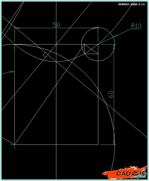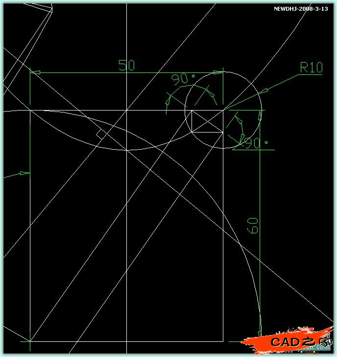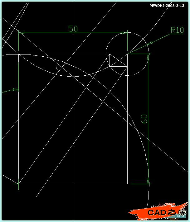 9、上一個 UCS ,復(fù)制邊,把橢圓面的拋物線中點復(fù)制到二條構(gòu)造線的交點上(參照圖)