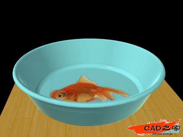 這樣設置后,就把它附給盆的底面,方法是鼠標在盆底擾動,見到盆底的線框發亮時,就按住Ctrl鍵,就將材質附上了,附上后就顯示出來一條魚了,如圖6所示: