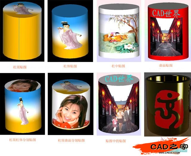 有些網友曾發問:在圓柱體上怎么貼圖?我也曾回帖告訴了五種方法。今又應網友要求,撰寫這篇在圓柱體上貼圖的教程,談了在圓柱體上貼圖的八種方法,供大家分享。