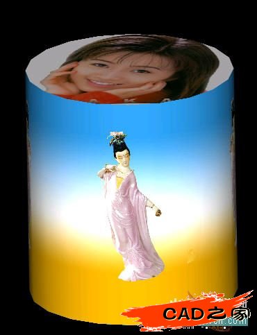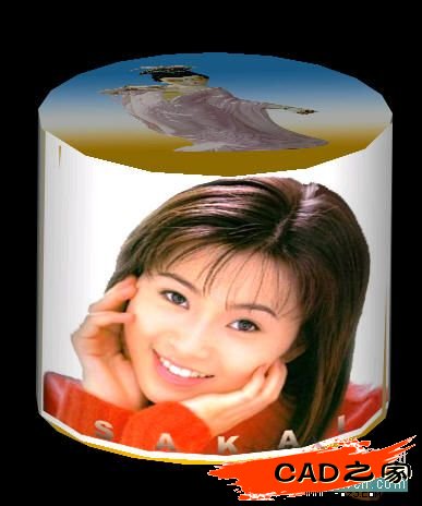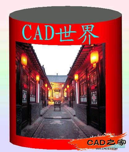 如果只在柱體貼圖,而頂面和底面以本色顯示,那就先用“面著色”命令改變柱體的線框顏色,然后到“材質”中以“隨ACI”方式予以附圖。具體方法:擊“修改/實體編輯/面著色”按鈕,將柱的體和面的線框分別著色(如紅色和白色,看如下的著色圖。)然后,擊“渲染/材質/新建材質”按鈕,再將你的圖片作為材質,新建材質后后,再擊“隨ACI”按鈕,將你的圖片附給紅色。不過這種方法的貼圖在柱面有時會有三個圖像,而且不能再使用“貼圖”功能來調整柱面了,如果去調整,將失去柱頂的圖像。這樣渲染的圖如下: