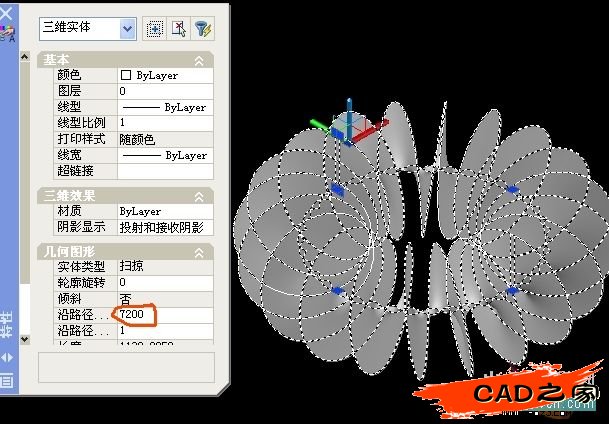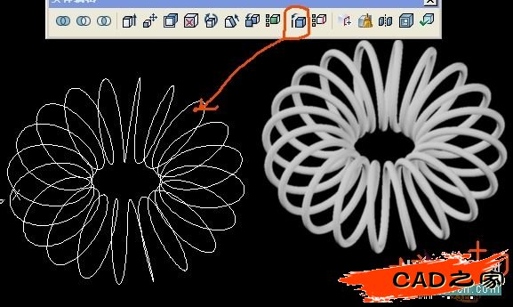 3.復制邊(要放大看清楚邊),得到現段螺旋線,然后畫小圓掃掠,這時也要等待一會,這比用苯法還快