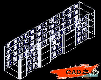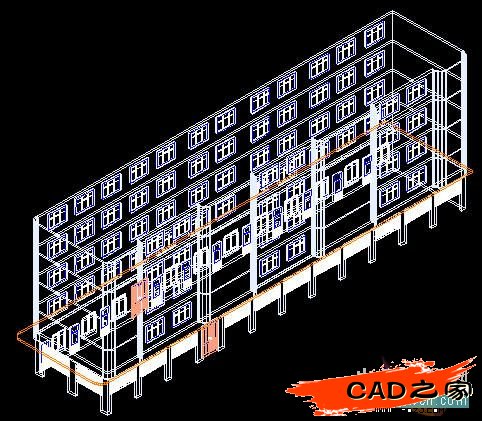 我繪制時(shí)測(cè)定的基點(diǎn)的差值是-567,10692,0,于是打@-567,10692,0)回車后就生成如(圖14)的多層建筑的立體圖了。