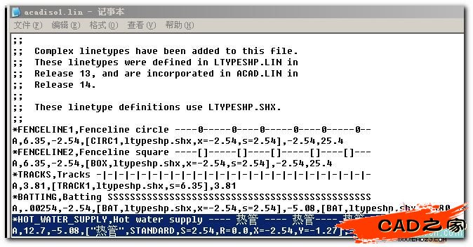 嘿嘿,今天看見一個問題貼,尋求如何自定義線型,自己操作了許久,都不太順,后來轉換一想,即然CAD有自帶線型,為什么不利用它原來的文件,加以編改下(不動其它參數,照葫蘆畫瓢),不又是一個新線型!沒想到,一試就成,嘿嘿,現在拿出來分享下!~