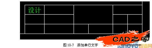 (5)現(xiàn)在用另一種方法來創(chuàng)建文字。將圖形中標(biāo)題欄部分放大,選擇菜單【Draw(繪圖)】→【Text(文字)】→【SingleLineText(單行文字)】,并按提示進(jìn)行如下操作: