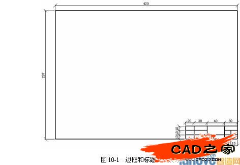 (1)首先在原來圖形的基礎(chǔ)上繪制邊框和標(biāo)題欄。用戶可根據(jù)圖10-1所示的尺寸自行完成。