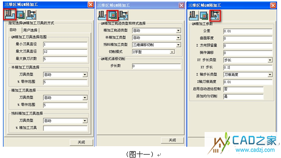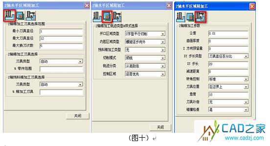 在第二個(gè)參數(shù)“2軸水平區(qū)域精加工”里面,參數(shù)設(shè)置還是跟“QM粗加工”是類似的(圖十)
