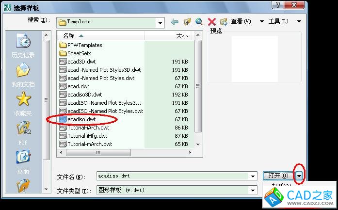 答:(1)新版本CAD要求選擇一個樣板,通常選擇acadiso.dwt就可以了,如果不想選擇樣板,可以單擊打開旁邊的下箭頭,選擇“無樣板打開-公制(M)”。(2)剛發現一個辦法:也可以預先指定一個樣本文件就可以不出現選擇樣本的對話框了,方法:菜單【工具】—【選項】—【文件】—【樣本設置】—【快速新建的默認樣本文件名】—【無】—【瀏覽】—【acadiso.dwt】—【確定】即可。