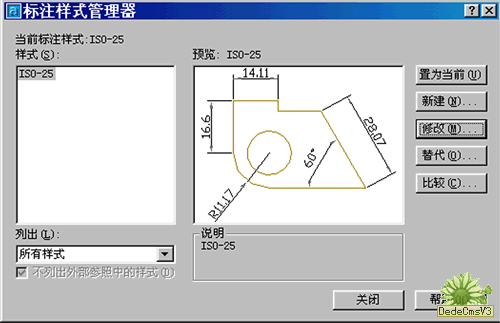 途徑1:利用AutoCAD提供的“尺寸樣式管理器”對話框設(shè)置當(dāng)前尺寸標(biāo)注樣式的替代樣式(如圖1所示)。