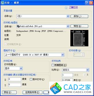 這種方法雖然步驟少,但由于圖紙尺寸是以像素表示的,如果不熟練,可能不容易正確設置,產生的jpg圖片不是太大就是太小,因此不推薦使用。
