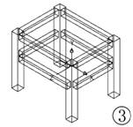 第十三步,操作菜單“修改”→“三維操作”→“三維鏡像”,命令行窗口提示“選擇對象:”,點選上一步形成的兩條橫撐接著右擊鼠標;命令行窗口接著提示“指定鏡像平面 (三點) 的第一個點或[對象(O)/最近的(L)/Z 軸(Z)/視圖(V)/XY 平面(XY)/YZ 平面(YZ)/ZX 平面(ZX)/三點(3)] <三點>:”,鍵入“yz”并回車;命令行窗口又提示“指定 YZ 平面上的點:”,鍵入“-125,0,0”并回車;命令行窗口又提示“是否刪除源對象?[是(Y)/否(N)] <否>:”,直接回車,最后兩條橫撐也形成了,見圖3。