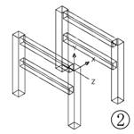 第九步,操作菜單“修改”→“三維操作”→“三維鏡像”,命令行窗口提示“選擇對象:”,點選上一步形成的兩條橫撐接著右擊鼠標;命令行窗口接著提示“指定鏡像平面 (三點) 的第一個點或[對象(O)/最近的(L)/Z 軸(Z)/視圖(V)/XY 平面(XY)/YZ 平面(YZ)/ZX 平面(ZX)/三點(3)] <三點>:”,鍵入“yz”并回車;命令行窗口又提示“指定 YZ 平面上的點:”,鍵入“100,0,0”并回車;命令行窗口又提示“是否刪除源對象?[是(Y)/否(N)] <否>:”,直接回車,另一邊的兩條橫撐也形成了,見圖2。