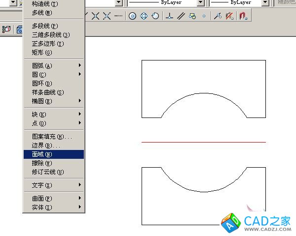 第3步 轉(zhuǎn)換面域 命令路徑:繪圖< 面域