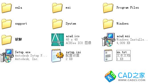 雙擊上圖中的“autocad2006”文件夾,就可以看到安裝程序包的完整內(nèi)容了
