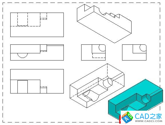 AutoCAD 2012的新命令ViewProj可以快速地創建三維模型的三視圖和軸側圖。各視圖可以有不同的比例和顯示樣式(著色、線框、消隱線)。欣賞一下吧: