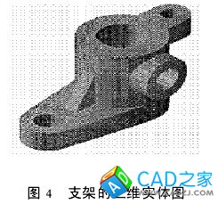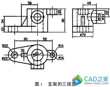 現(xiàn)以圖1所示的支架為例,詳述由二維圖形進(jìn)行實(shí)體造型的操作方法及步驟。