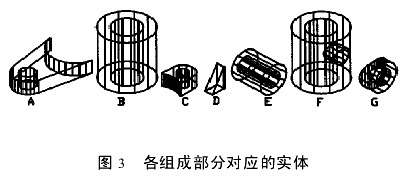 ??? 對(duì)于復(fù)雜零件,在建模的時(shí)候并不需要準(zhǔn)確地作出零件每一組成部分的實(shí)體,然后對(duì)它們求并集。而是簡化其中的一些細(xì)節(jié),如圖3B和E表示的實(shí)體并不如實(shí)反映空心圓柱與空心圓柱凸臺(tái)的結(jié)構(gòu)形狀(它們的真實(shí)結(jié)構(gòu)如圖3F和G所示),且相互間產(chǎn)生干涉。如果在組合時(shí),先對(duì)各組成部分求并集,后對(duì)其上相關(guān)要素(中空部分)求差集,就能夠消除干涉的影響,簡化作圖過程。