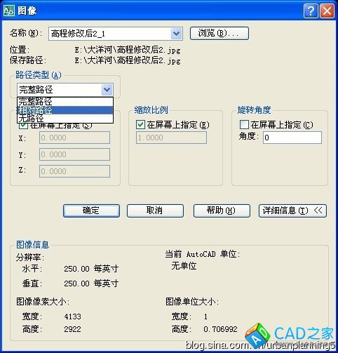 不知道你有沒有注意到:插入光柵圖像后出現的對話框中有“路徑類型”這一欄,里面有完整路徑、相對路徑和無路徑三個選擇(見下圖)。也許有人是懶得設置,也許有人是確實不知道這個地方還有講究的,反正我一開始是沒有注意到的,所以就沒去管它。cad默認的是完整路徑,但是其實這個是最麻煩的選擇!