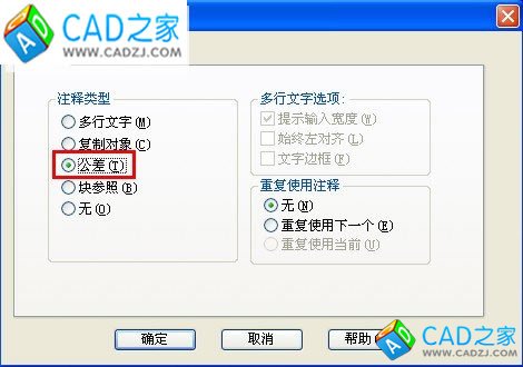 2.在“注釋”選項(xiàng)下,選擇“公差”選項(xiàng)。如下圖所示: