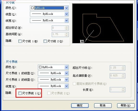 2、修改半徑標注的樣式,在“線”選項卡中,將尺寸界線隱藏起來即可。