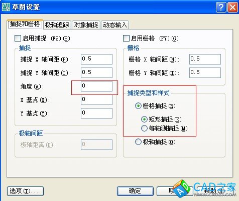 打開草圖設置,里面有捕捉和柵格設置,選擇柵格補捉下的矩形補捉。把角度改成0即可
