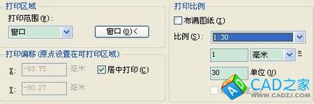 4、打印設置:使用窗口打印(不用我細說了吧),比例調好1:30,最好鉤起居中打印;