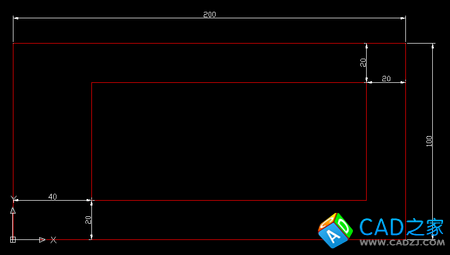 CAD中怎么使用相對坐標畫矩形,就像這個圖怎么用相對坐標畫出里面的那個矩形。