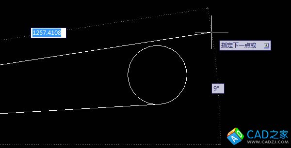 第三步:畫直線,指定第一點在圓上,這時直線的第一個端點可以在圓上任意位置移動。