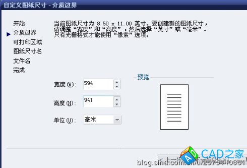 自定義圖紙尺寸(無邊框設置高度為841)