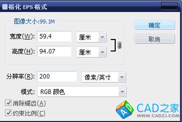 在PS中代開eps文件,此時會出現柵格化圖像設置對話框,具體設置如下: