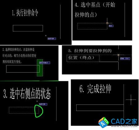 如圖欲將左側(cè)方框拉伸到右面直線處,步驟
